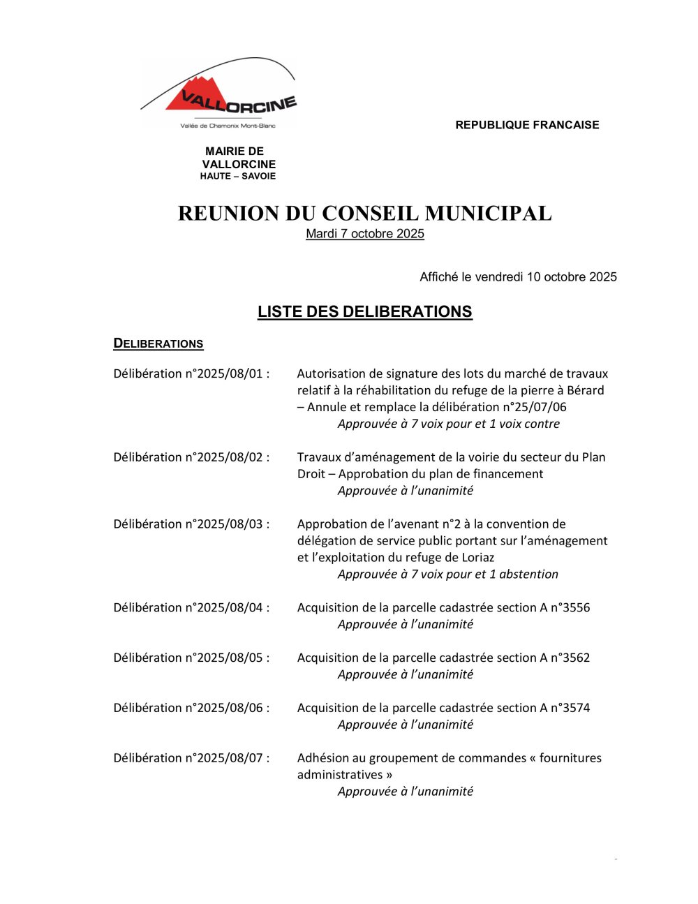 Vous êtes ici : Accueil > Municipalité > Délibérations, ordre du jour conseil municipal, arrêtés, informations > Conseils Municipaux > Conseils Municipaux 2025 > Conseil Municipal du 7 octobre 2025 > Liste des délibérations
